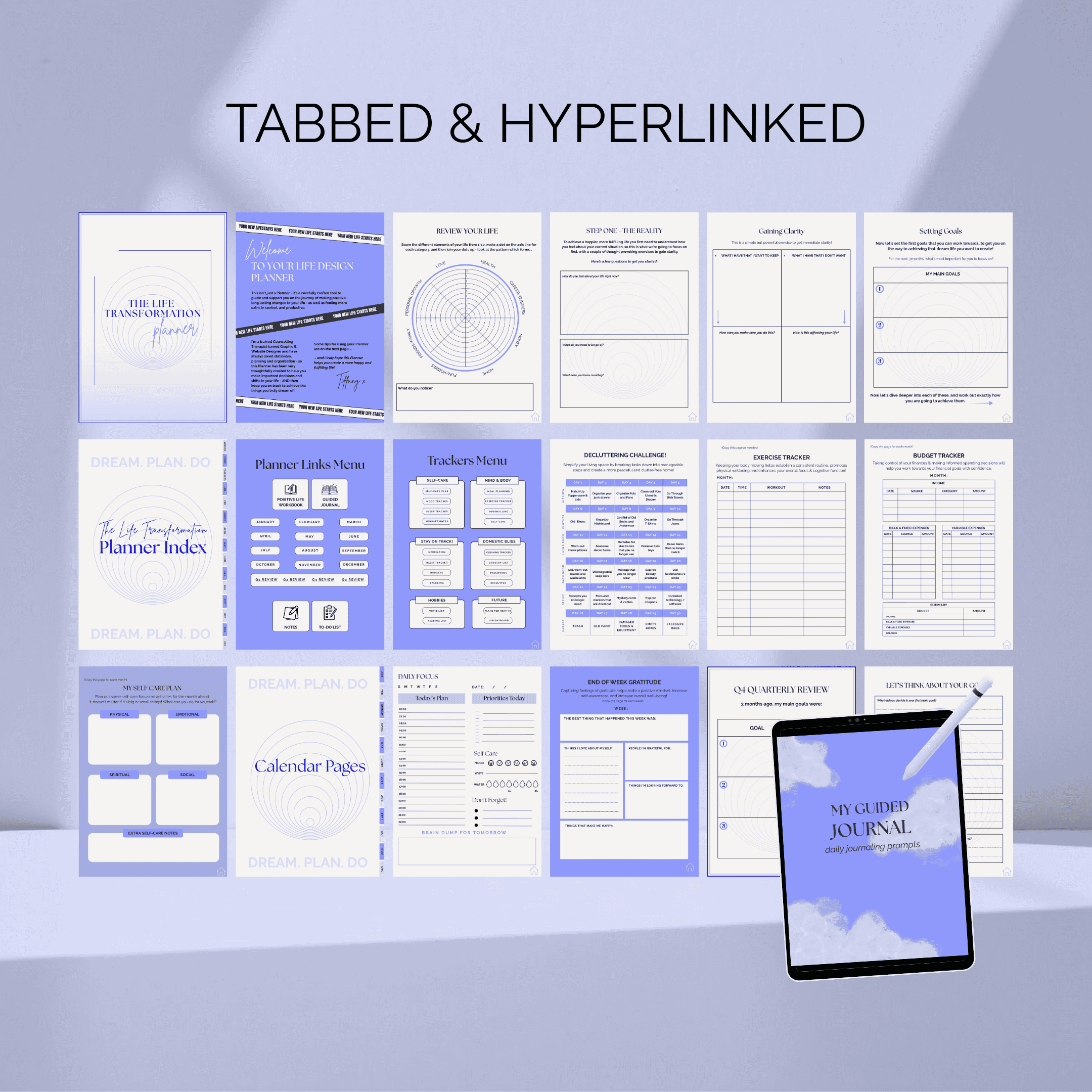 Transformational Life Workbook, Digital & Printable Life Planner/Agenda PLUS Guided Journal - all in one beautifully designed space.